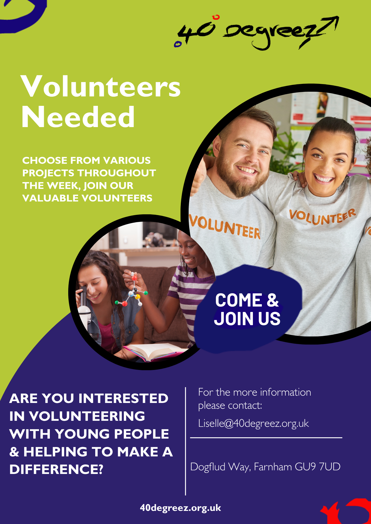 Volunteers are at the heart of what we do. Supporting young people at 40 Degreez is a rewarding experience and a meaningful way to make a real difference in your local community.
